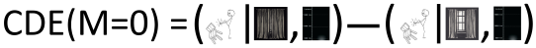 Think of it this way: You are in a dark room with curtains closed (do[X=1],do[M=0]) and, after opening the curtains, the room remained just as dark as it was before (do[X=0],do[M=0]). A CDE = 0 indicates that the probability of stubbing your toes would remain unchanged in that situation, where opening or closing the curtains does not add any ambient light into the dark room (Y10 - Y00 = 0). Either way, it is dark, and you are predicted to have a coinflip’s chance (Y10 = Y00 = .50) of stubbing your toes.